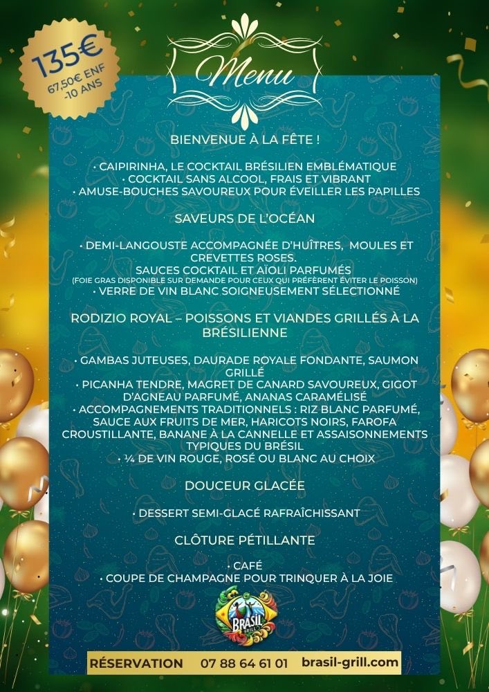 🎉🇧🇷 Réveillon du 31 décembre au Brazil Grill : une soirée brésilienne inoubliable ! 🇧🇷🎉
