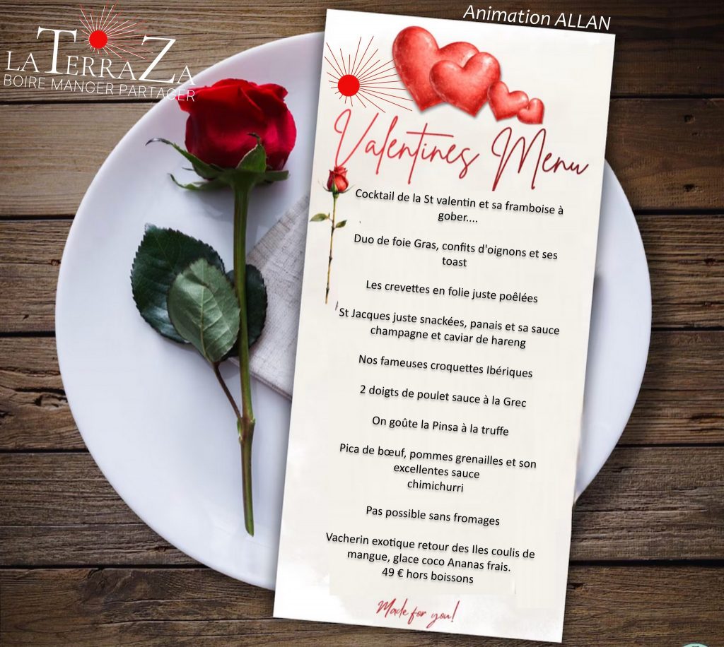 À l’occasion de la fête des amoureux, le Restaurant La Terraza vous invite à vivre une soirée inoubliable dans une ambiance chaleureuse et festive.