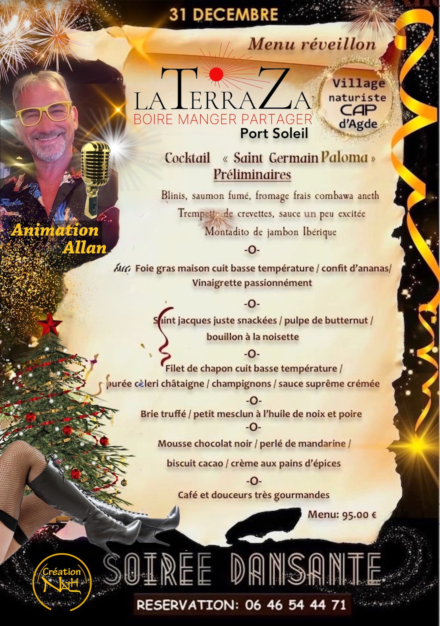 La Terrasse Restaurant devient la TerraZa et vous a concocté un menu spécial, vous allez adorer. La soirée sera animée par Allan qui n'a pas son pareil pour mettre l'ambiance. C'est une soirée dansante. Nul besoin de présenter Allan, c'est l'animateur qui tombe toujours à Pic RÉSERVATION: 06 46 54 44 71