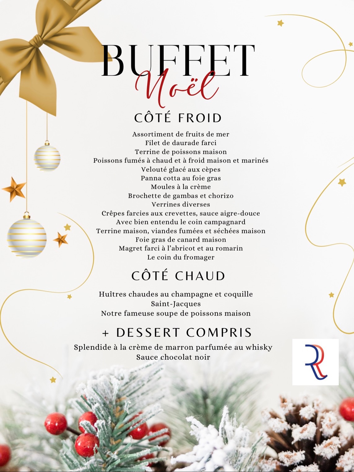 Grand Buffet de Noël servi le jeudi 25 décembre à 12h – 59€ par personne