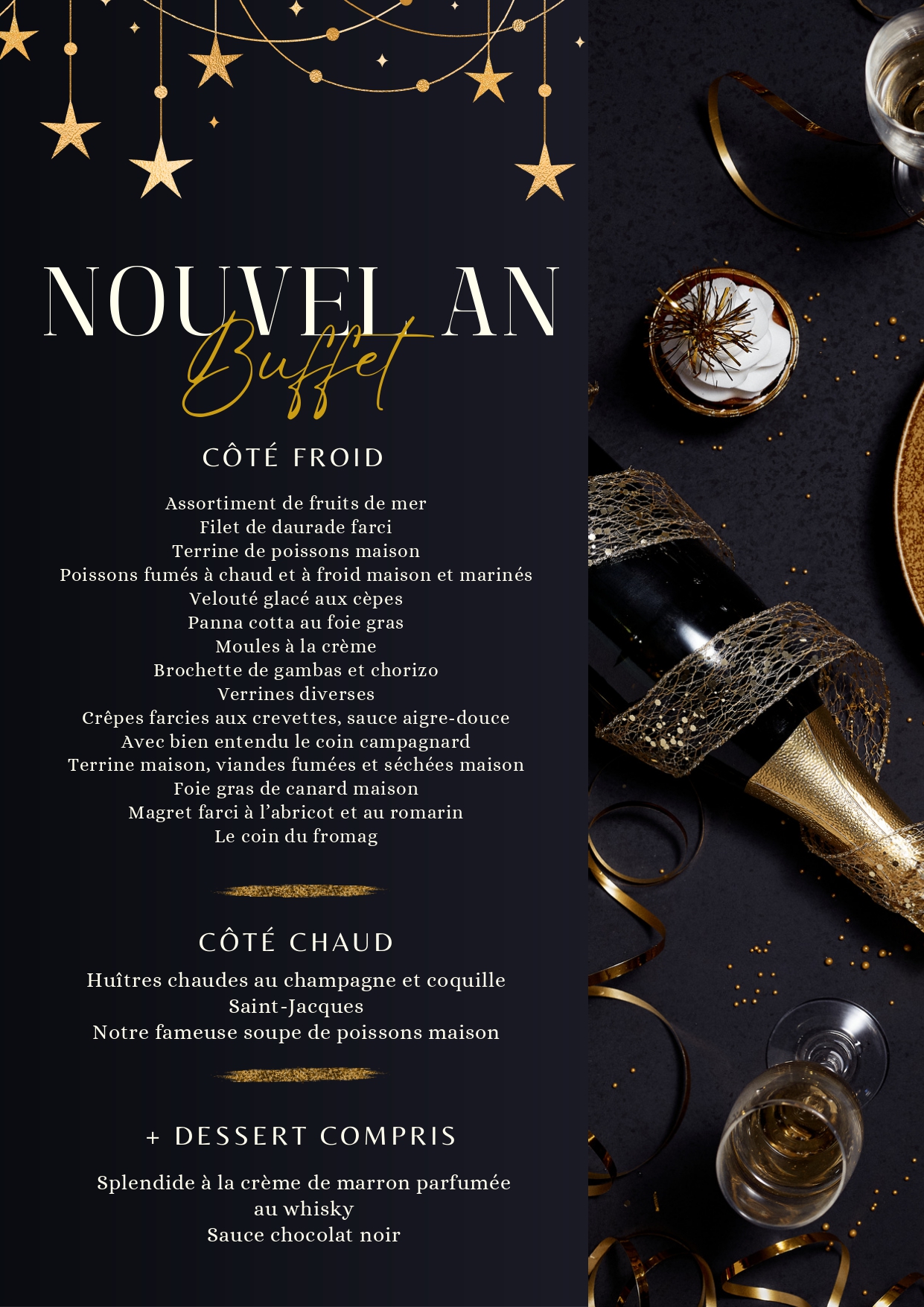 Grand Buffet du nouvel an servi le jeudi 1er janvier à 12h – 59€ par personne