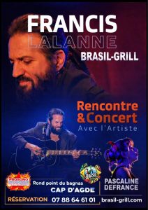 🎤✨ CONCERT EXCEPTIONNEL AU BRASIL GRILL ✨🎤 🌟 Francis Lalanne en live ! 📅 Le 1er mai 2026 📍 Brasil Grill – Cap d’Agde (Rond-point du Bagnas) Venez vivre une soirée unique avec : 🎶 Concert live avec l’artiste 🍽️ Dîner gourmand 💃 Soirée dansante festive Une ambiance chaleureuse, élégante et inoubliable vous attend ! […]