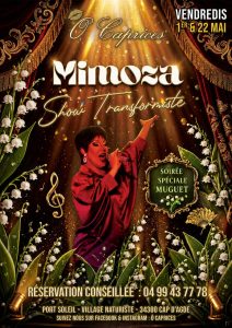 💋💋le vendredi 1er mai: Le brin de muguet porte-bonheur pour vous remercier d’être là !!! Spectacle transformiste, a partir de 21h00 plat traditionnel midi et soir: véritable quenelle de brochet lyonnaise, et notre carte. Info réservation : 04 99 43 77 78 Restaurant Ô 💋Caprices Port Soleil