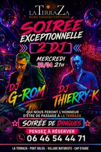 Soirée exceptionnelle !!! 2 DJ vous feront passer une soirée dingue : DJ thierry-K & DJ G-Rom Pensez a réserver : 06 46 54 44 71